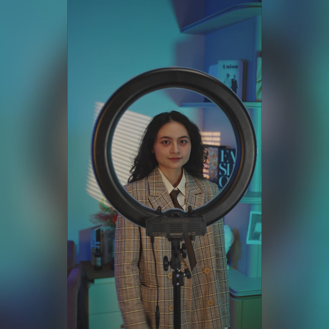 - 3200K & 5600K Bi Color Temperature- This big circle ring light includes orange and white filters to enable two color temperatures of 3200K & 5600K, contributing to different photography and video recording tones for optimal results. The white filter softens the light source and highlights portrait features, while the orange filter simulates indoor lighting or yellow lighting, creating a warm and inviting atmosphere as content creator essential and influencer must have