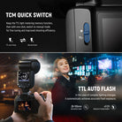 - Enhanced UI and TTL/M Mode Switch- This speedlight has an upgraded UI and a TCM key that switches from TTL to M mode in a second. It features automatic metering, 1/1-1/256 manual dimming, 28-105mm focal length, stroboscopic flashes, 1/8000s HSS, front/rear curtain sync, FEC/FEB/FEL (flash exposure compensation/bracketing/locking), S1/S2 optical slave modes, and other functions