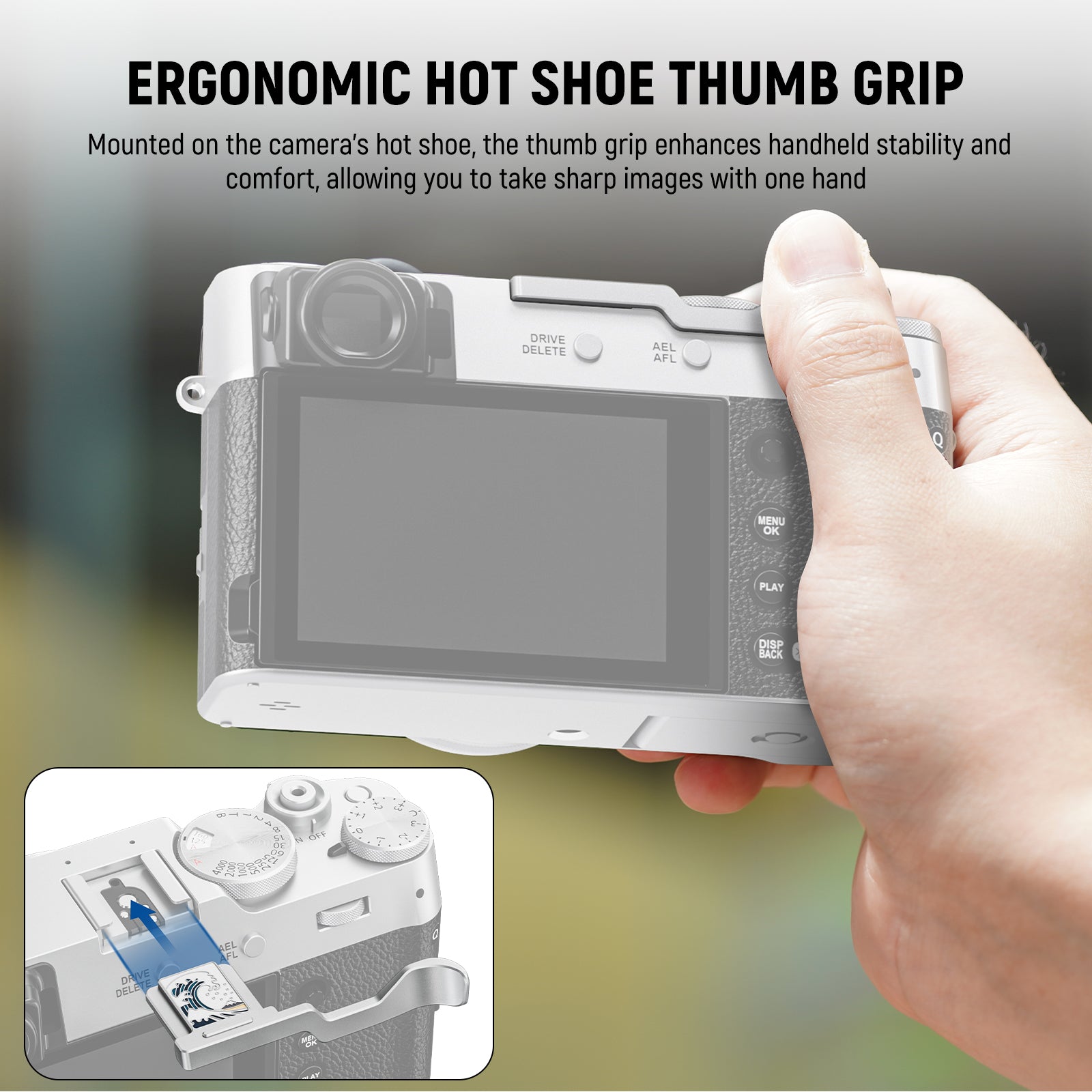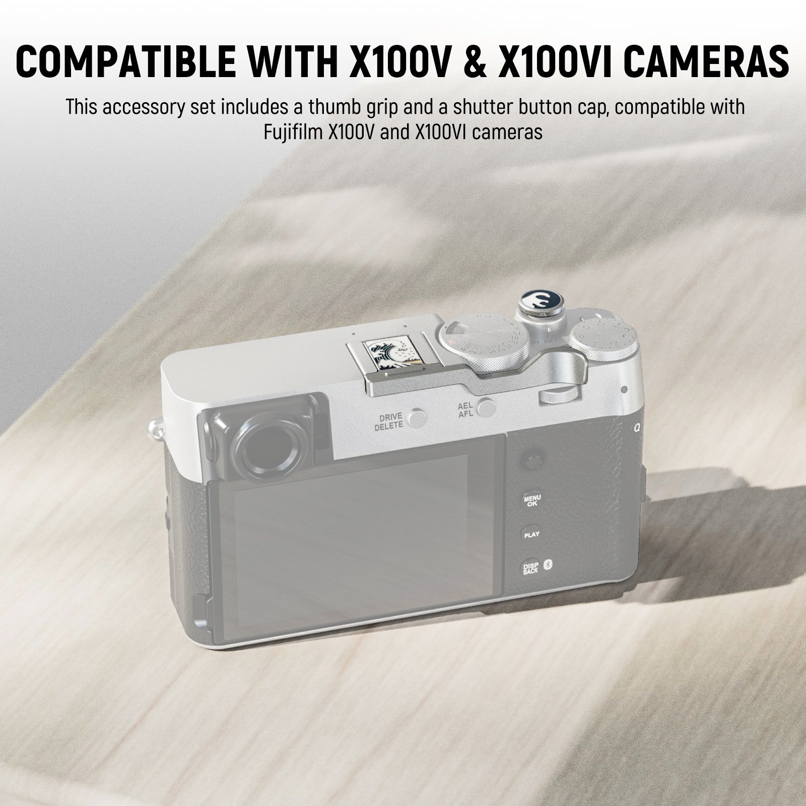 - Compatible with X100V & X100VI- This accessory set includes a thumb grip and a shutter button cap, compatible with Fujifilm X100V fuji X100VI mirrorless cameras