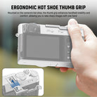 - Ergonomic Hot Shoe Thumb Grip- Mounted on the your digital camera's hot shoe, the thumb up grip enhances handheld stability and comfort, allowing you to take sharp images with one hand