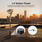- 1/4" Bottom Thread- The gimbal extension pole features a 1/4"-20 screw hole for mounting on a mini desktop tripod for more versatile use