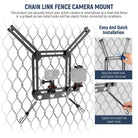 - Chain Link Fence Camera Mount- This gamechanger fence mount can securely mount your action camera or iphone or others’ phone to a chain link fence or a gridwall via two metal hooks and two elastic hooks connected by carabiners. Perfect for recording footage of baseball, basketball, football, softball, tennis, and other sports with this cell phone fence mount kit