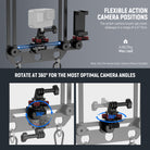 - Flexible Action Camera Positions- The action camera mount can move sideways in a range of 4.3" (11cm) and rotate at 360° for the most optimal camera angles. The thumb screw allows you to tighten the action camera mount by hand. Four shock absorptive rubber rings can reduce vibrations and help you take stable videos