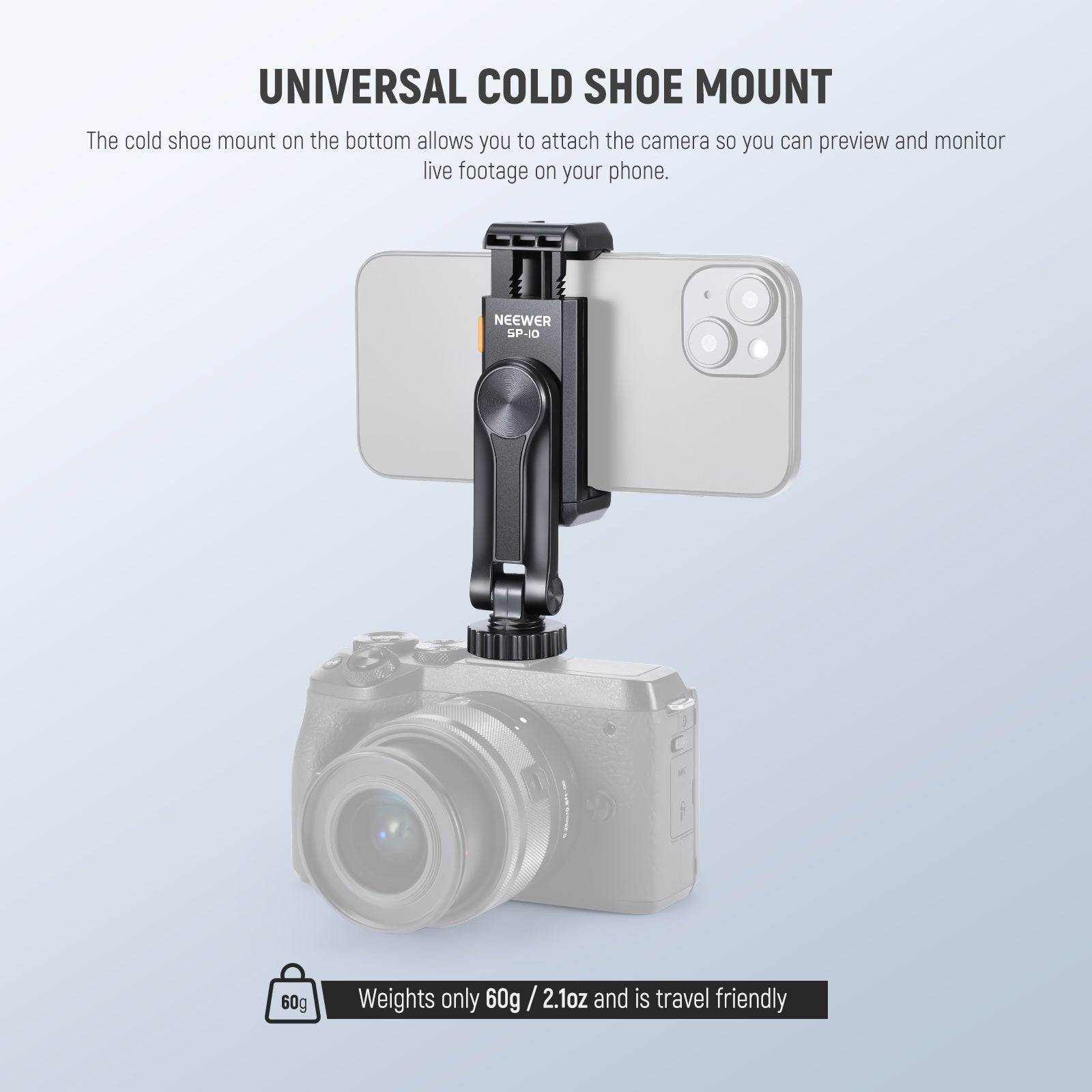 NEEWER BASICS SP-10 Phone Tripod Mount Holder with 1/4" Thread & Cold Shoe