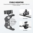 - 360° Dual Ball Head for Versatile Angles- Each articulating arm features a ball head with a U notch for 360° rotation and 90° tilt adjustments, and can be secured at any desired angle using the enlarged lever, ensuring stability and precise positioning
