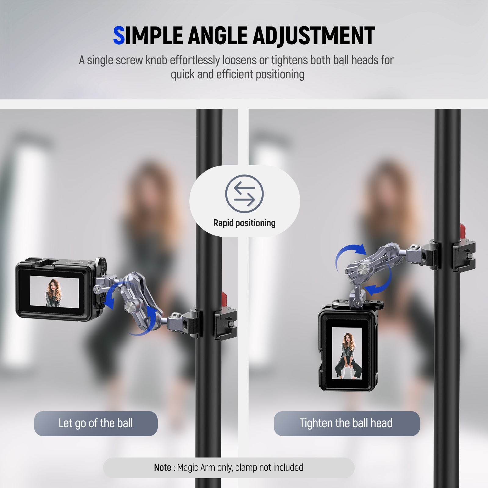 - 360° Rotation & 270° Tilt- This magic arm camera mount with two ball heads enable 360° rotation and 270° tilt for flexible positioning. Rubber rings increase friction for extra security