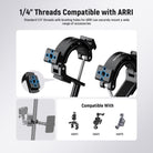 - 1/4" Threads Compatible with ARRI- Standard 1/4" threads with locating holes for ARRI can securely mount a wide range of accessories, such as NEEWER UA013 Magic Arm with Super Clamp Set, UA070 Lightweight Magic Arm, and UA021 Articulating Arm for Action Camera