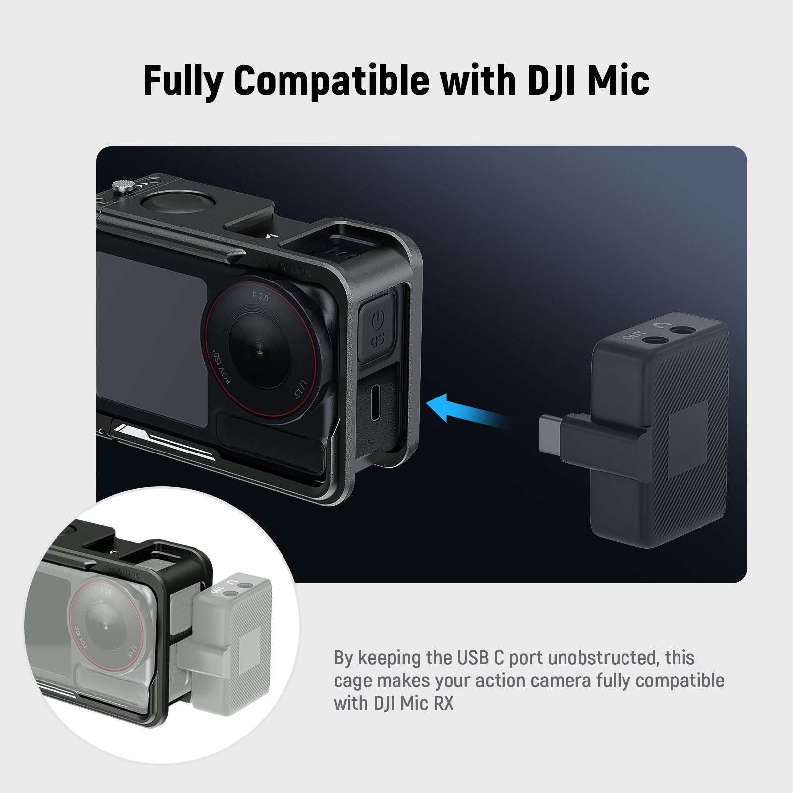 - Fully Compatible with DJI Mic- By keeping the USB C port unobstructed, this cage makes your action camera fully compatible with DJI Mic RX