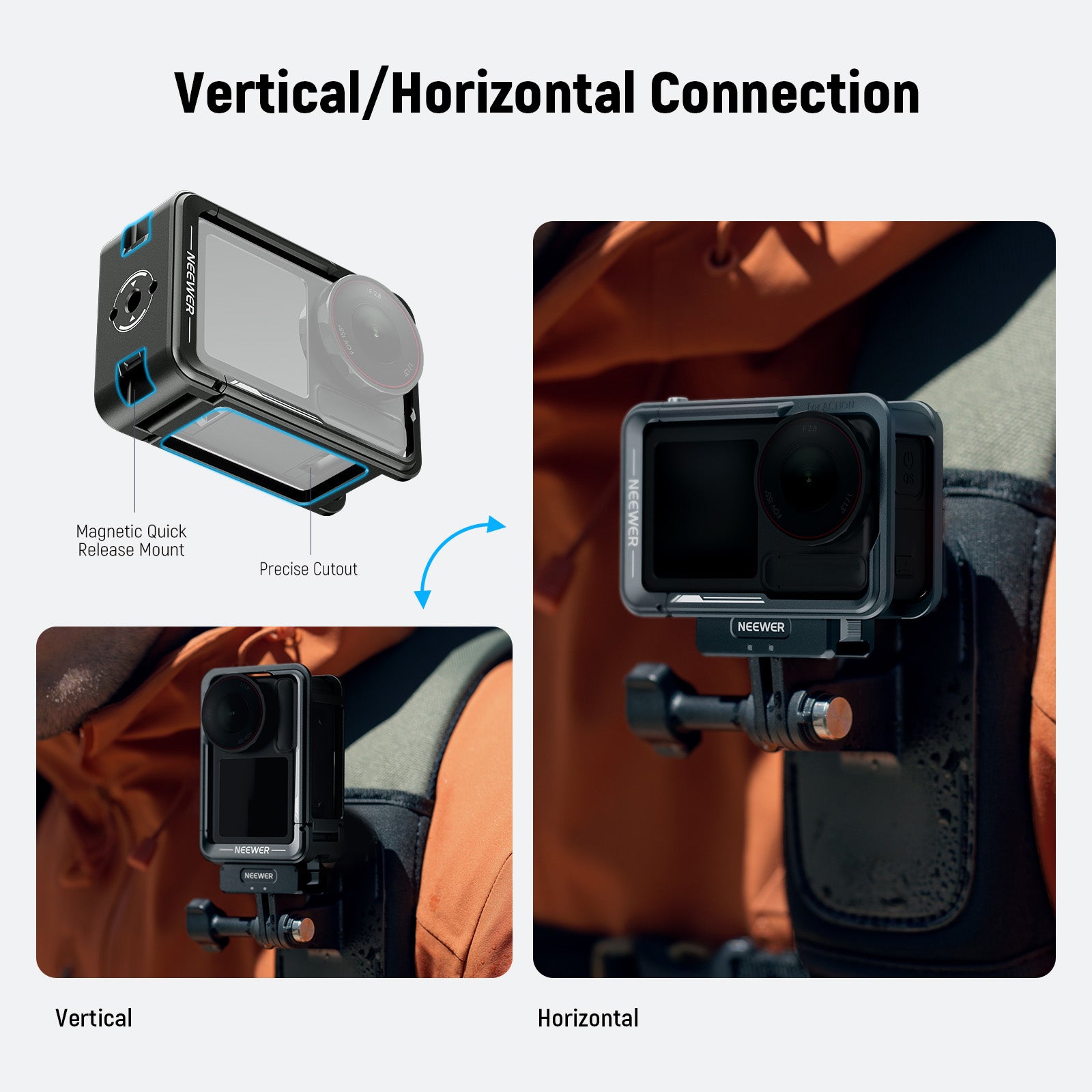 - Vertical/Horizontal Connection- Inner magnets and mounting points on the bottom and side are seamlessly compatible with DJI Magnetic Adapter Mount, allowing you to mount the camera in vertical or horizontal directions