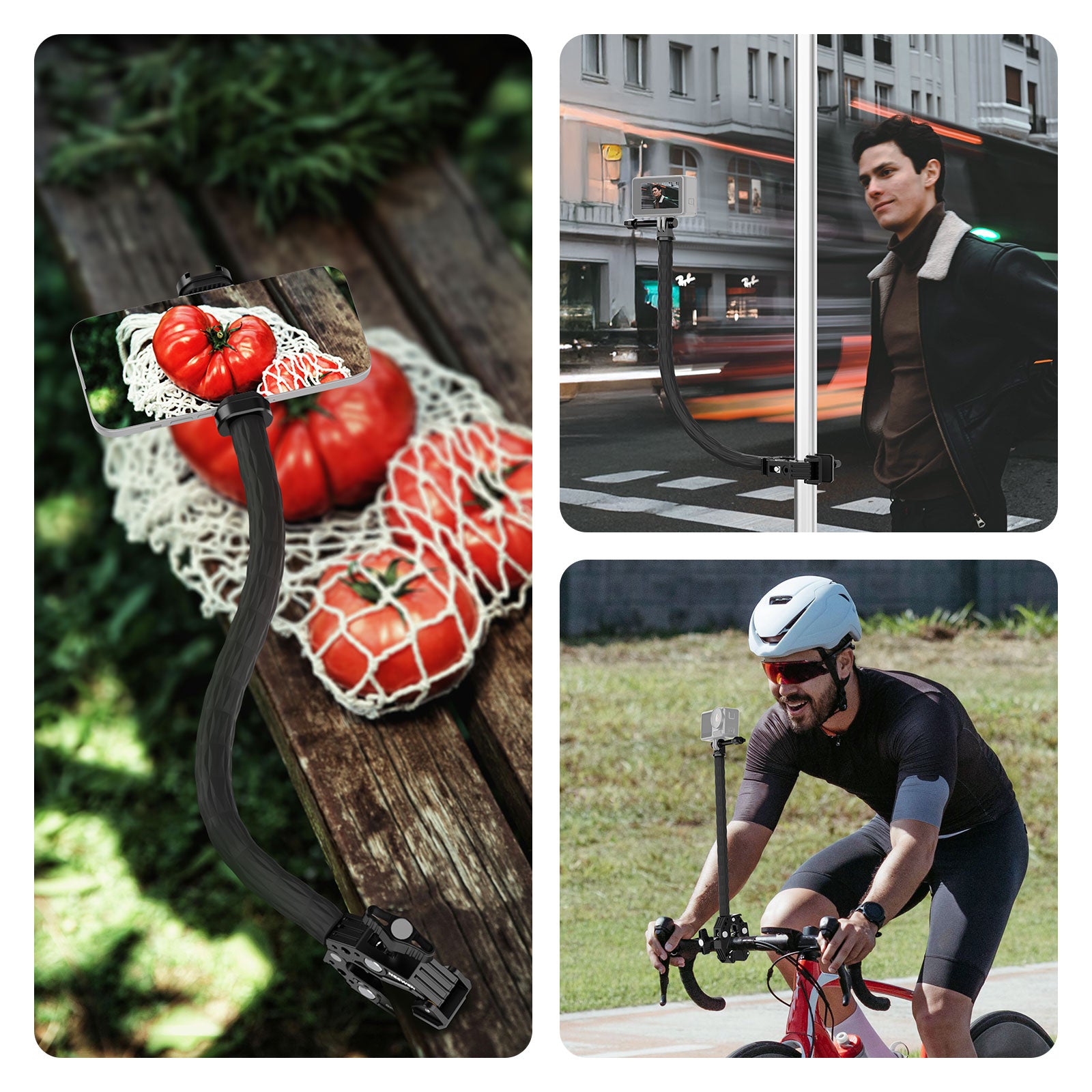 - Flexible & Bendable Soft Tube- The 10"/25cm soft tube, crafted with 7 aluminum rods and a nonslip rubber coating, offers enhanced resilience and durability for repeated bending. Its 1/4" screw ensures broad compatibility with action cameras and phone tripod mounts up to 14oz/400g