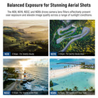 - Balanced Exposure for Stunning Aerial Shots- The ND8, ND16, ND32, and ND64 drone camera lens filters offer precise exposure control during dynamic outdoor activities, with light reduction options of 3, 4, 5, and 6 stops, respectively. They effectively prevent overexposure and elevate image quality across a range of sunlight conditions, contributing to capturing stunning motion blur for epic footage on every flight
