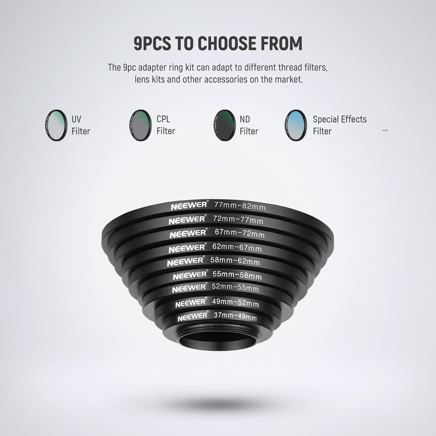 NEEWER 9 Pieces Step-up Lens Filter Adapter Rings Set