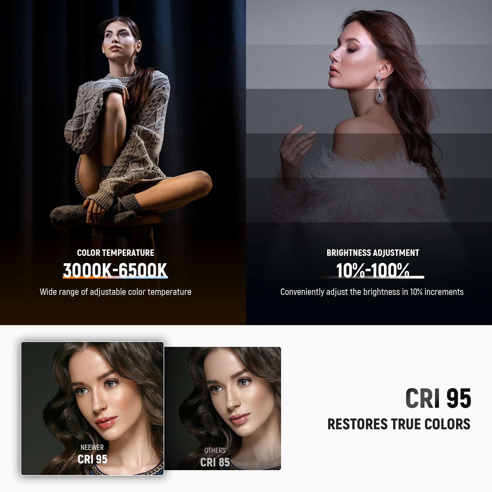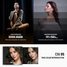 • 3000K-6500K Dimmable Circle Fill Light- This LED light for video recording offers a color temperature range of 3000K-6500K, allowing for a seamless transition from warm tones for a cozy vibe to cool tones for a professional setting. Brightness can be adjusted across 10 different settings, ranging from 10% to 100%, to suit different lighting conditions, whether bright or dim. The high color rendering index of 95 makes sure the original color and beauty are faithfully reproduced