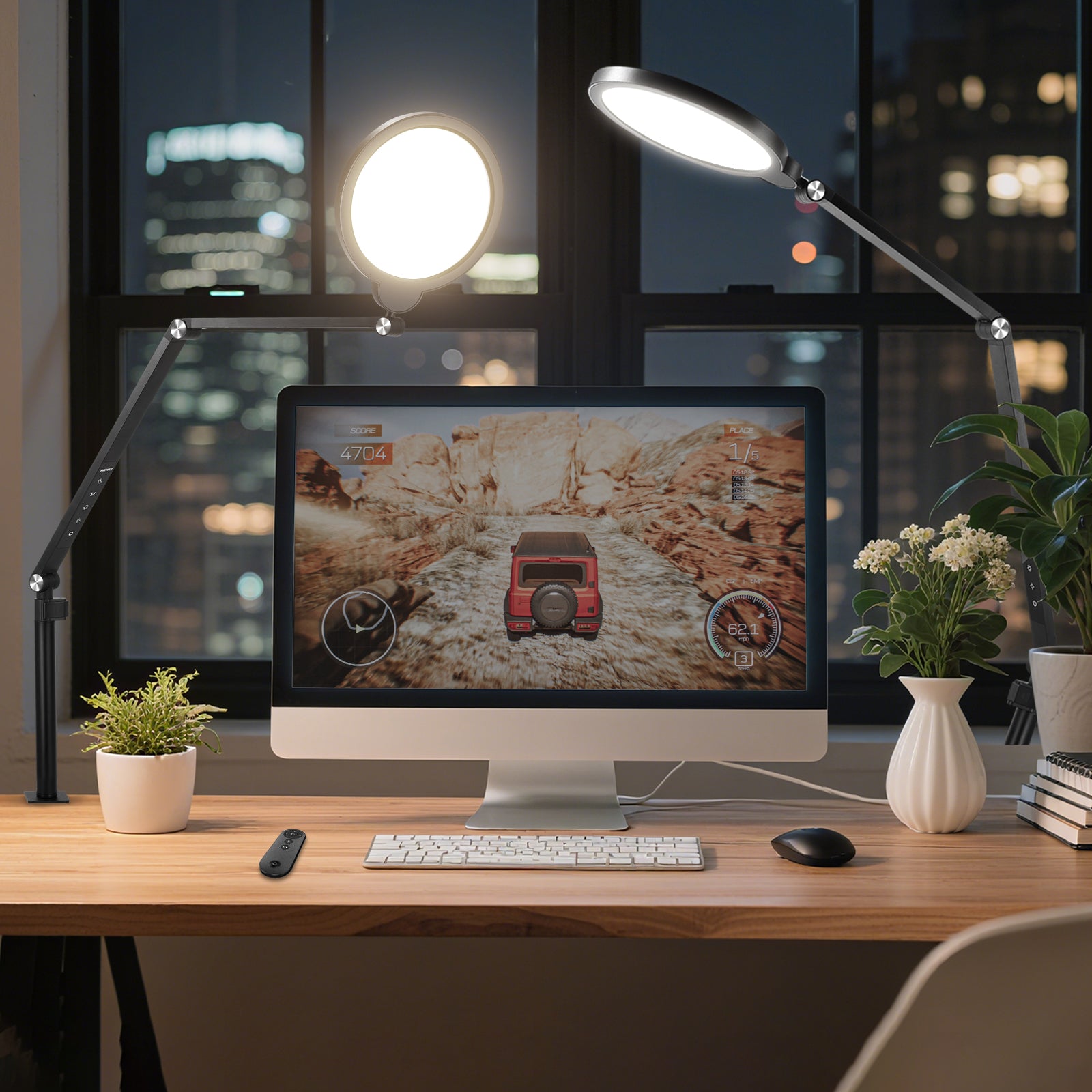 • Quick Setup with Adjustable Height & Angle- The included C clamp allows you to securely mount the streaming light onto a desktop in a minute. The articulating arm provides a platform to rotate the streaming light by 360° at two points and enables height adjustment by folding it up and down, easily finding the best lighting position for optimal shooting results