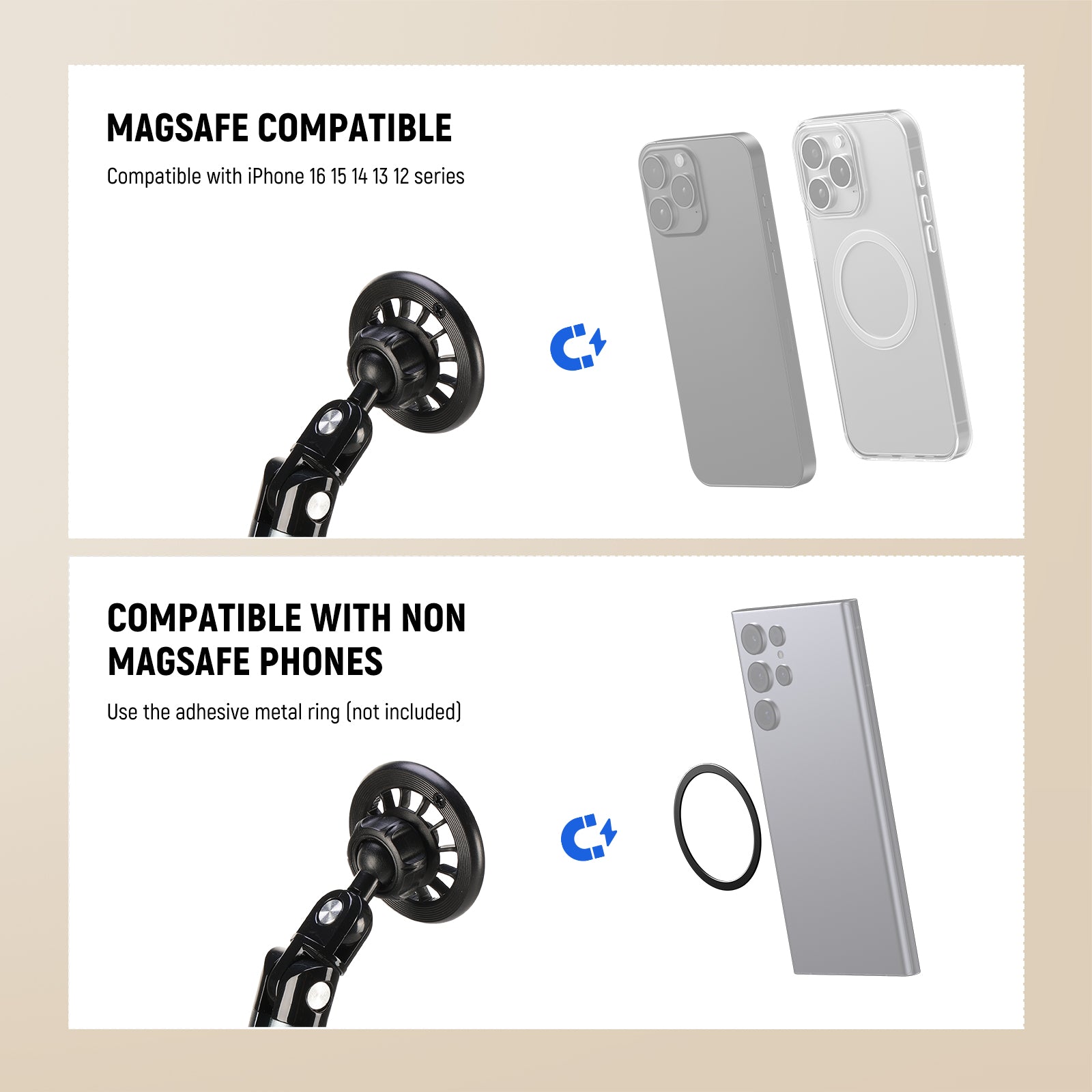 - Versatile Desk Phone Stand- The desk phone stand magnetically attaches your smartphone to bedside tables, coffee tables, or kitchen counters, providing a more comfortable viewing angle for selfies, Zoom calls, video recording, live streaming, and even online conferences, remote learning, and gaming streaming. Ideal as content creator essential gear and influencer must have photography videography accessories for more versatile use