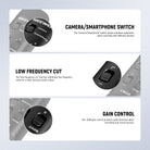 - Low Frequency Cut & Gain Control- The "low frequency cut" function eliminates low frequency noise for a clear and pure audio output. And the -10dB gain control prevents audio distortion when recording loud sound sources