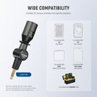 - 3.5mm TRS Connector- Suitable for DSLR cameras, camcorders, laptops, recorders, and wireless microphone transmitters with a 3.5mm TRS jack (such as NEEWER CM28, CM28 Pro, CM28 Ultra, CM31). Compatible with Rode Wireless Go II; compatible with DJI Mic. Not compatible with GoPro; not compatible with Sony Microphone System