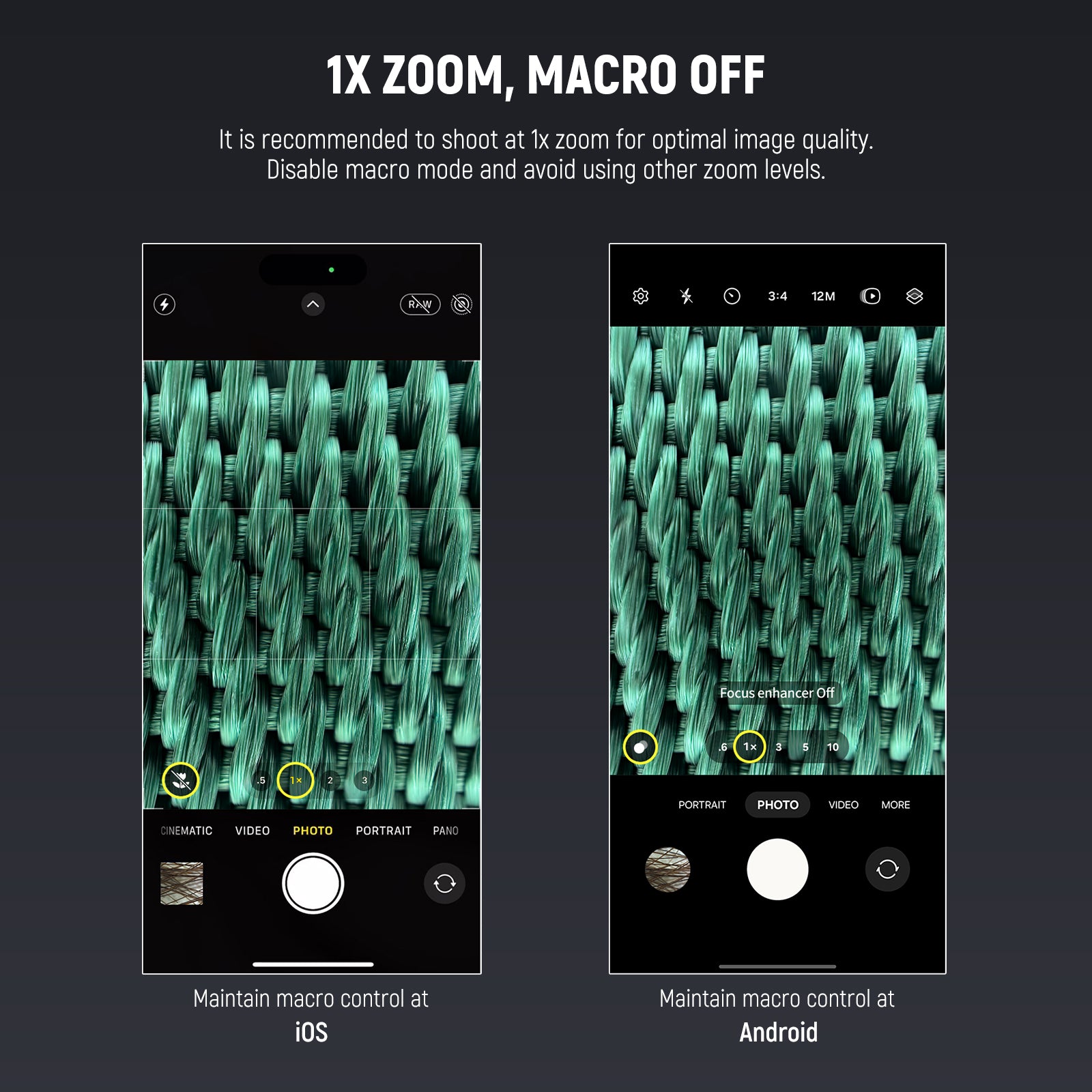 - Zero Distance Shooting- Attach the lens to the main camera of your phone, turn on the built in LED light, and place it on the surface of the subject to take wonderful macro photographs, ideal for plants, trichomes, coins, stones, skin, and more. Note: Before use, please clean the main camera and additional cameras of your phone. Vignetting may occur depending on phone models. In this case, please tighten the lens or zoom the camera magnification to 1.1x