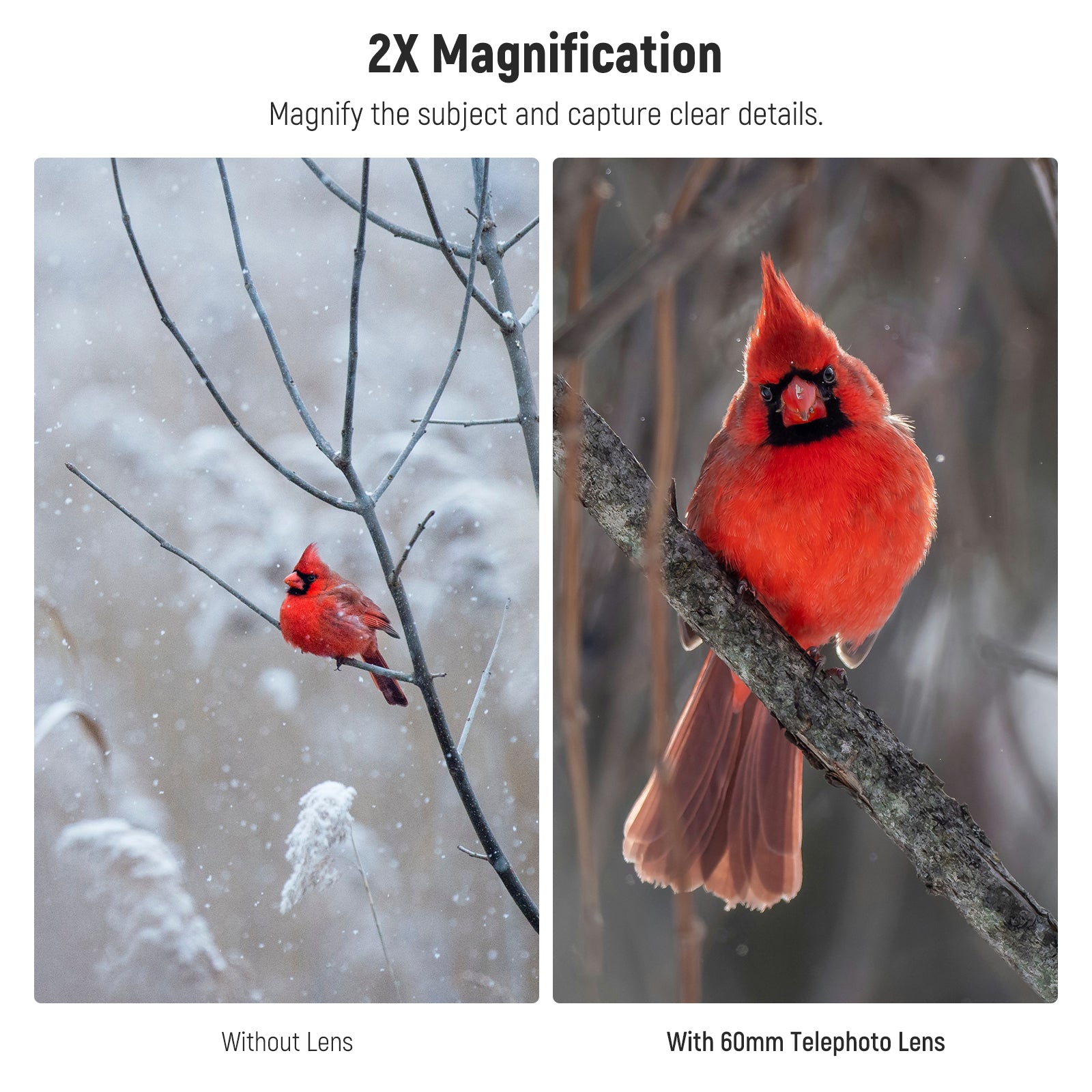 - 2X Telephoto Lens for Phone- The lens attaches to the phone's main camera and double the focal length to let you take clear, detailed, and stunning photos without using digital zoom, perfect for wildlife, portraits, and landscapes