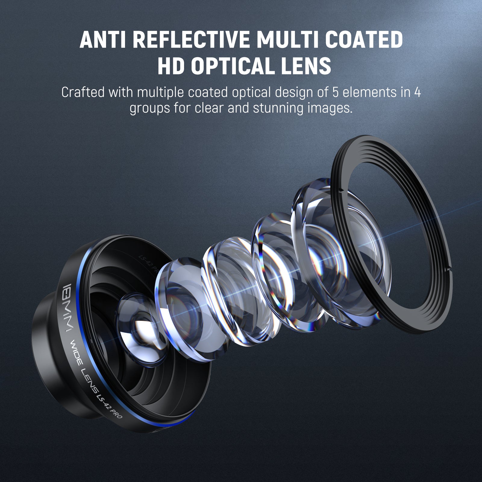 - Anti Reflective Multicoated HD Optical Lens- The premium HD optical glass ensures clear shots. Crafted with multiple coated optical design of 5 elements in 4 groups for clear and stunning images