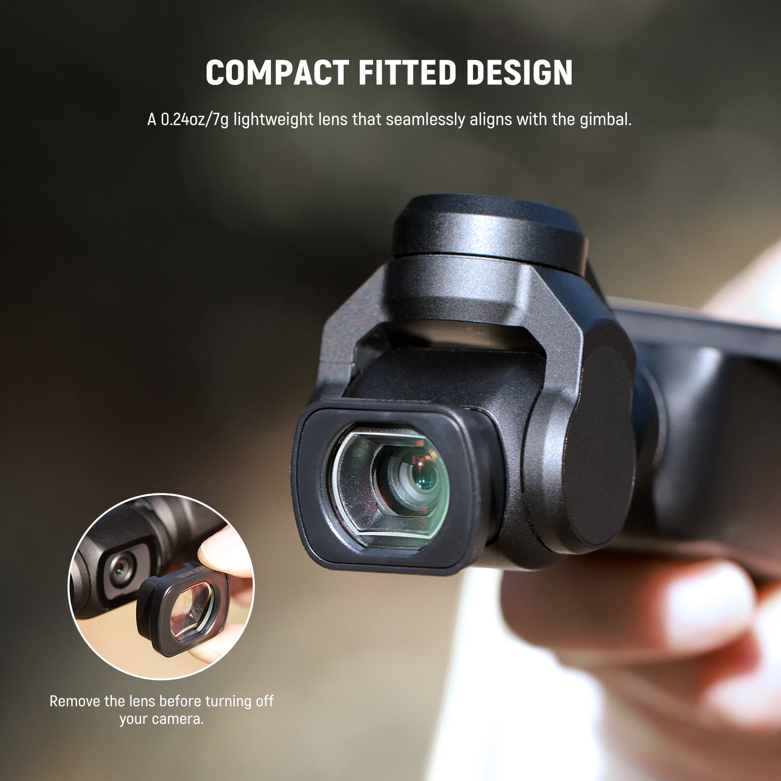 - Fast & Secure Magnetic Attachment- The magnetic lens frame attaches to your camera quickly and securely. Its matte black finish minimizes lens glare and the slim structure ensures seamless gimbal calibration and storage. Note: Remove the lens before powering the gimbal off