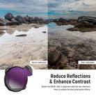 - Reduced Light & Greater Control- The ND8, ND16, ND32, and ND64 filters reduce light by 3, 4, 5, and 6 stops respectively. Select a filter to reduce different amounts of light, enabling you to slow down the shutter speed and prevent overexposure, giving you more control over your shots