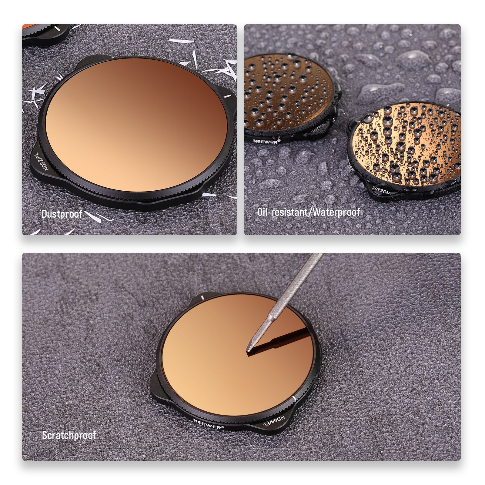 - Lightweight ND/PL Filters- NEEWER ND Neutral density/Polarized filters with aircraft-grade aluminum frames, is super lightweight, weighing only 0.19oz/5.4g