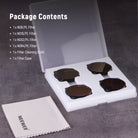 - Package Contents- 1 x ND8/PL Filter, 1 x ND16/PL Filter, 1 x ND32/PL Filter, 1 x ND64/PL Filter, 1 x Filter Case, 1 x Filter Cleaning Cloth