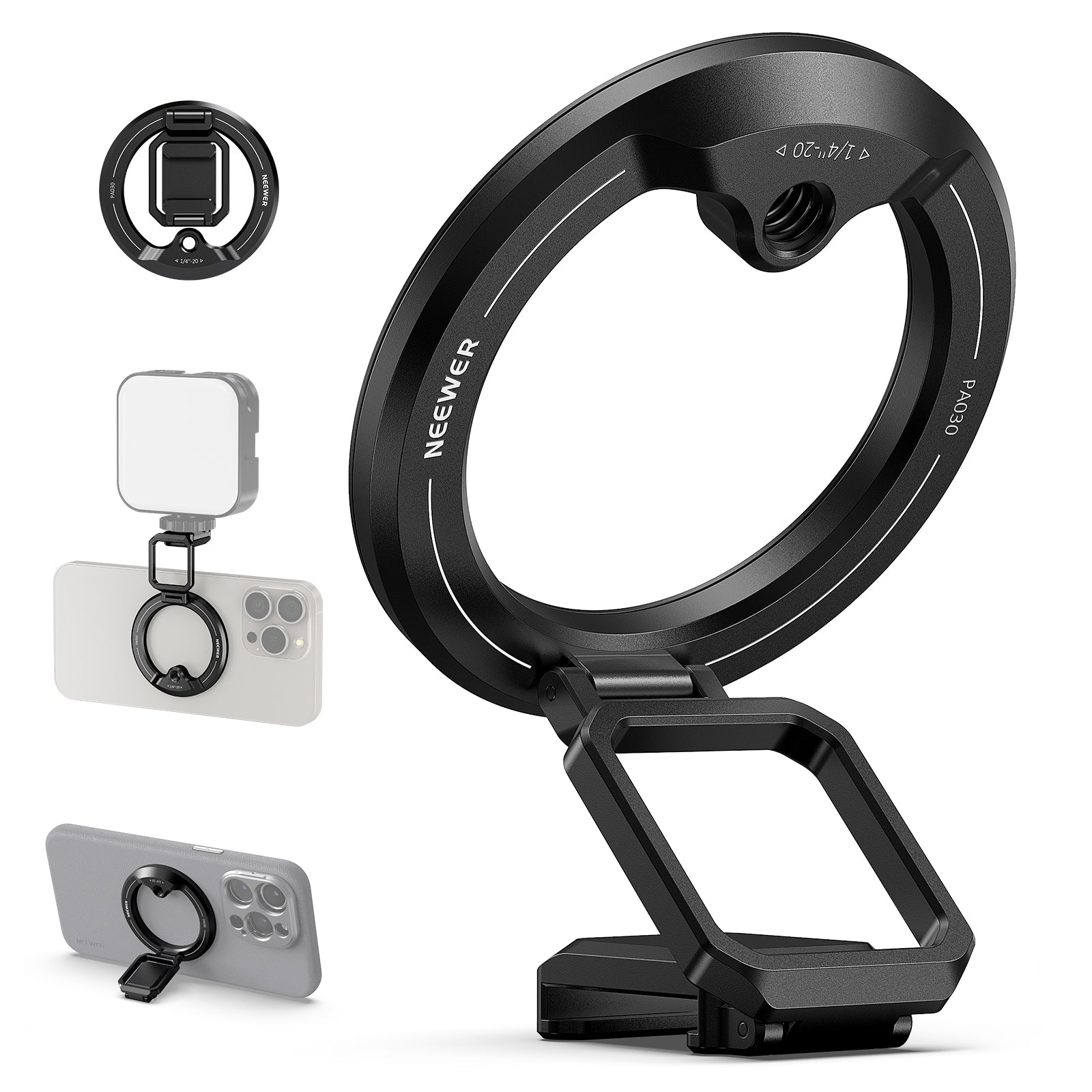 - Compatible with MagSafe Phones- NEEWER PA030 professional phone photography accessories kit comes with a magnetic phone tripod stand mount compatible with MagSafe iPhone models, including 16, 16 Pro, 16 Pro Max, 16 Plus, 15 Pro Max, 15 Pro, 15 Plus, 15, 14 Pro Max, 14 Pro, 14 Plus, 14, 13 Pro Max, 13 Pro, 13 mini, 13, 12 Pro Max, 12 Pro, 12 mini, and 12. Note: To avoid scratches, we highly recommend you use a case that is compatible with MagSafe