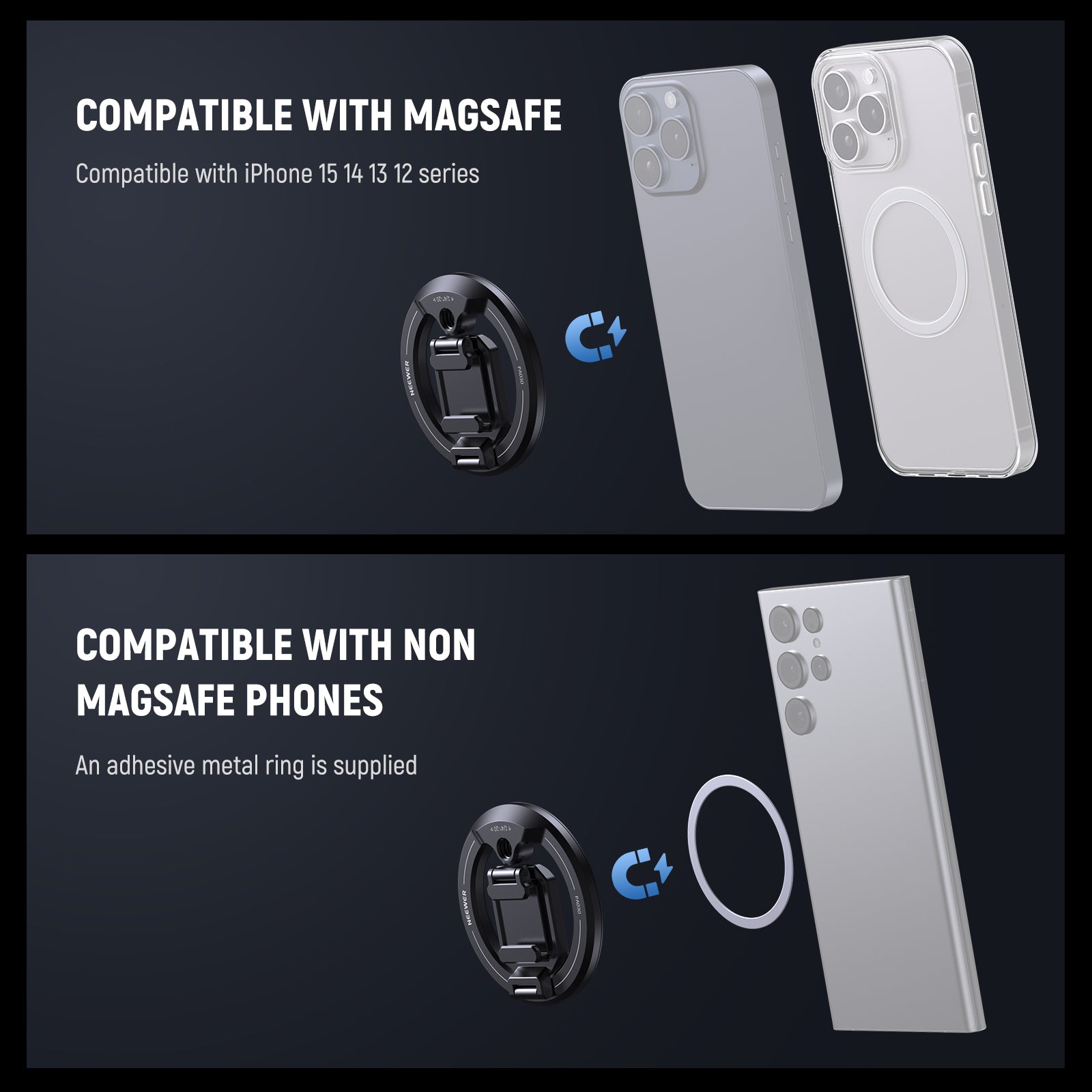 - Adhesive Magnetic Ring Included- If your phone or case is not compatible with MagSafe, you can stick the provided adhesive magnetic ring accessory on its back and easily achieve strong magnetic attachment to the tripod mount. Making this mini and compact cell phone holder stand for desk/table compatible with Samsung Galaxy S24 S23 S22 Ultra compatible with Google Pixel 9 8 7 Pro, etc.