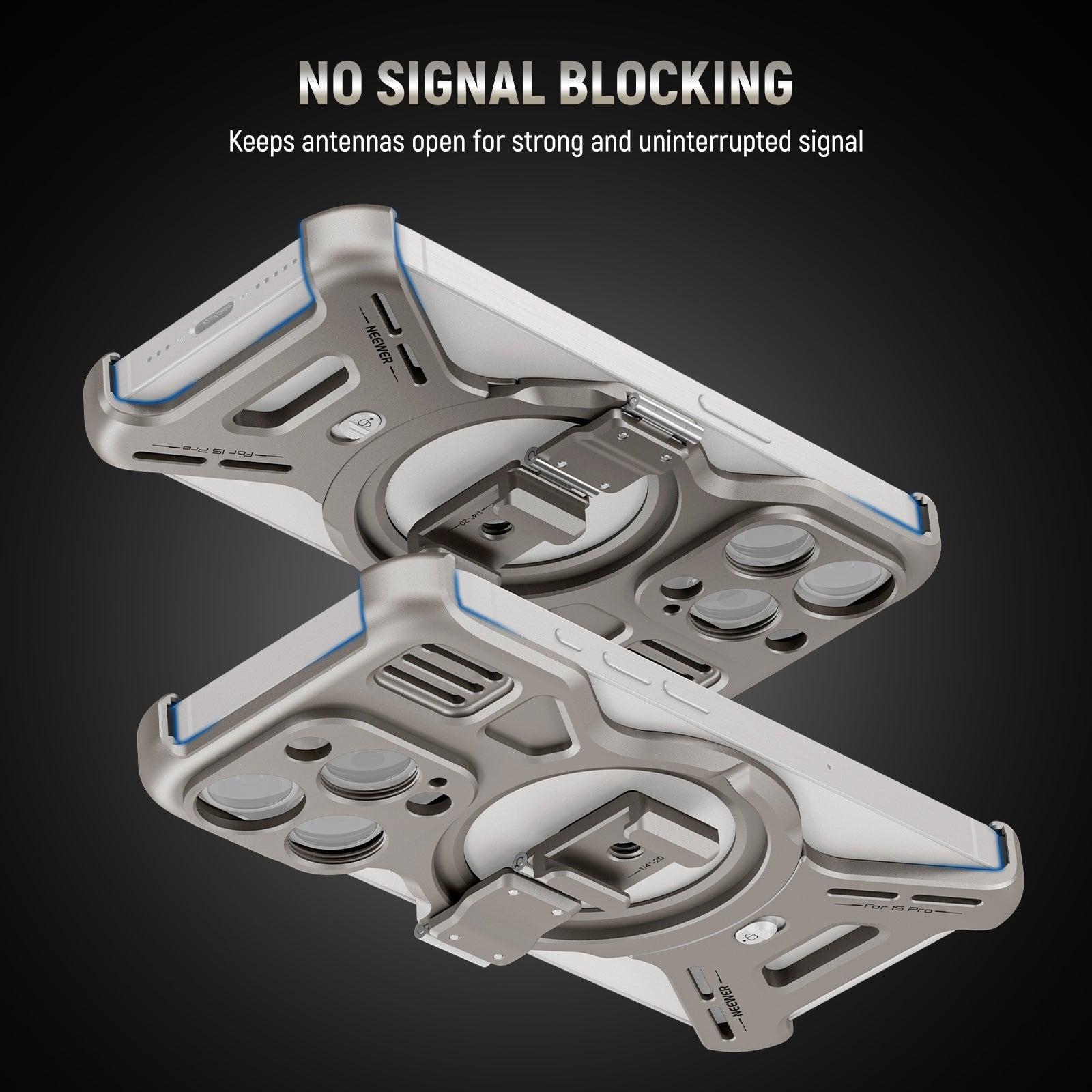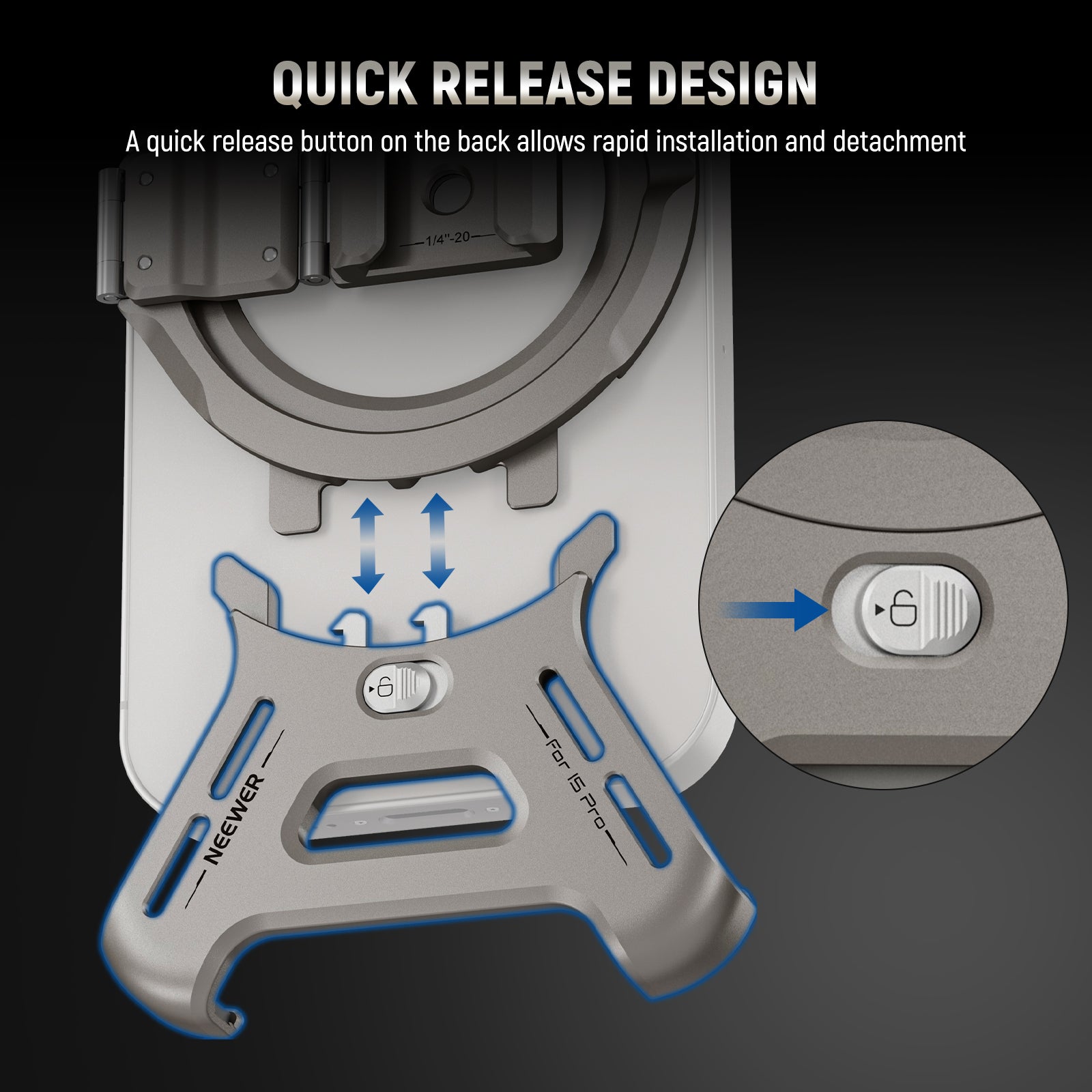 - Compatible with iPhone 15 Pro/Pro Max- Our LiteArmor metal frame is seamlessly compatible with iPhone 15 Pro/Pro Max, offering full access to buttons, charging port, cameras, and speakers. A quick release button on the back allows rapid installation and detachment, and the back cutout is compatible with MagSafe chargers