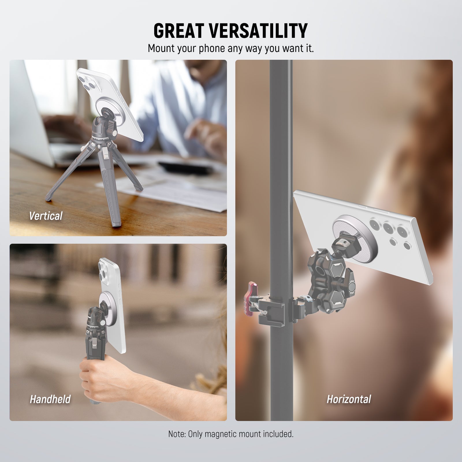 - Small & Lightweight Build- At just 1.4oz/40g, this palm size, compact magnetic phone mount is portable for outdoor photography or videography as a content creator essential and influencer must have gear and magnetic accessories for stable phone camera photos and videos