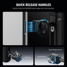- 1 Click Installation with Full Access- This integrated phone cage quickly opens and locks via a side button and fits seamlessly with the S25 Ultra without blocking the camera, charging port, and function buttons. Lined with shock absorbing rubber cushions, it is a protective and versatile phone stabilizer for video recording indoors and outdoors