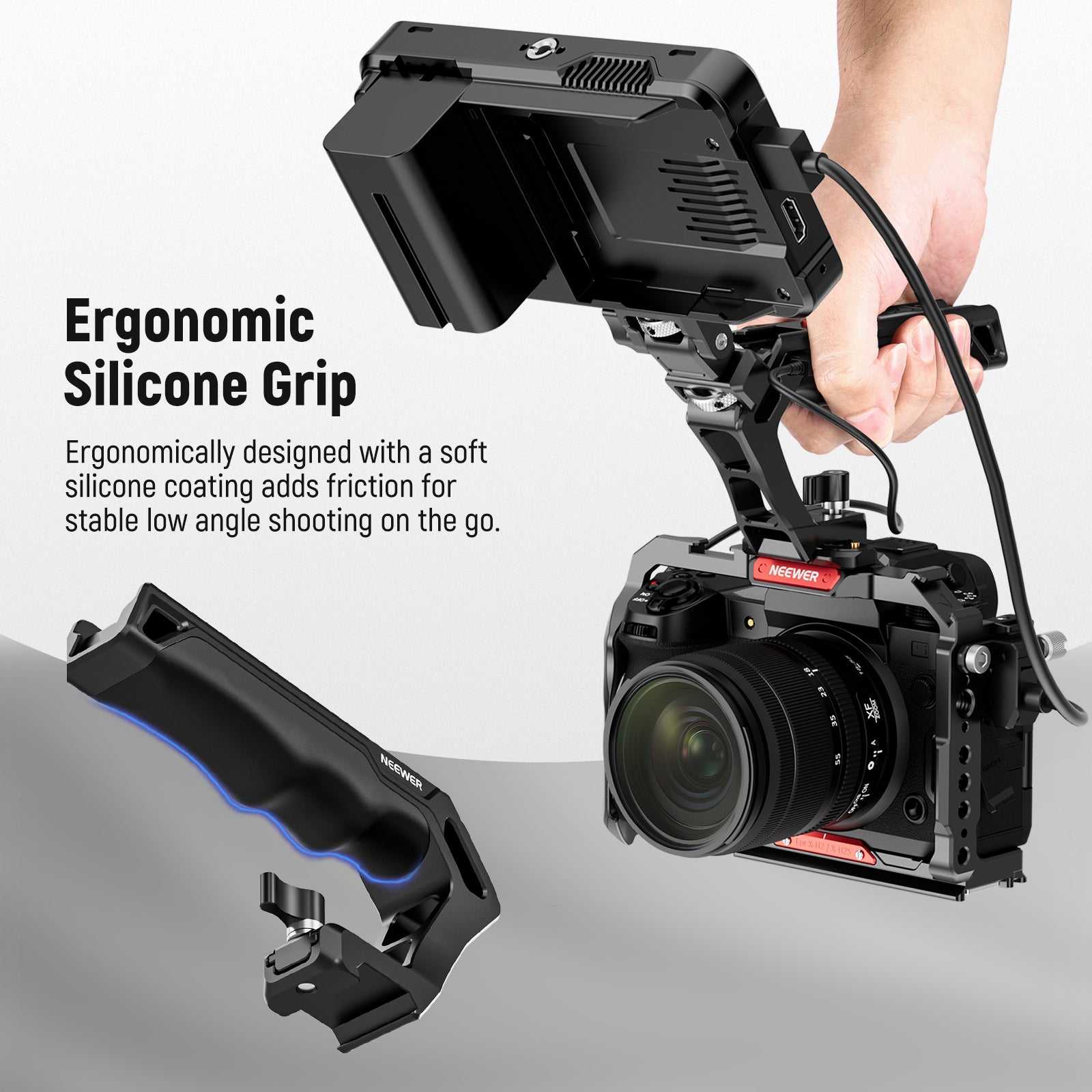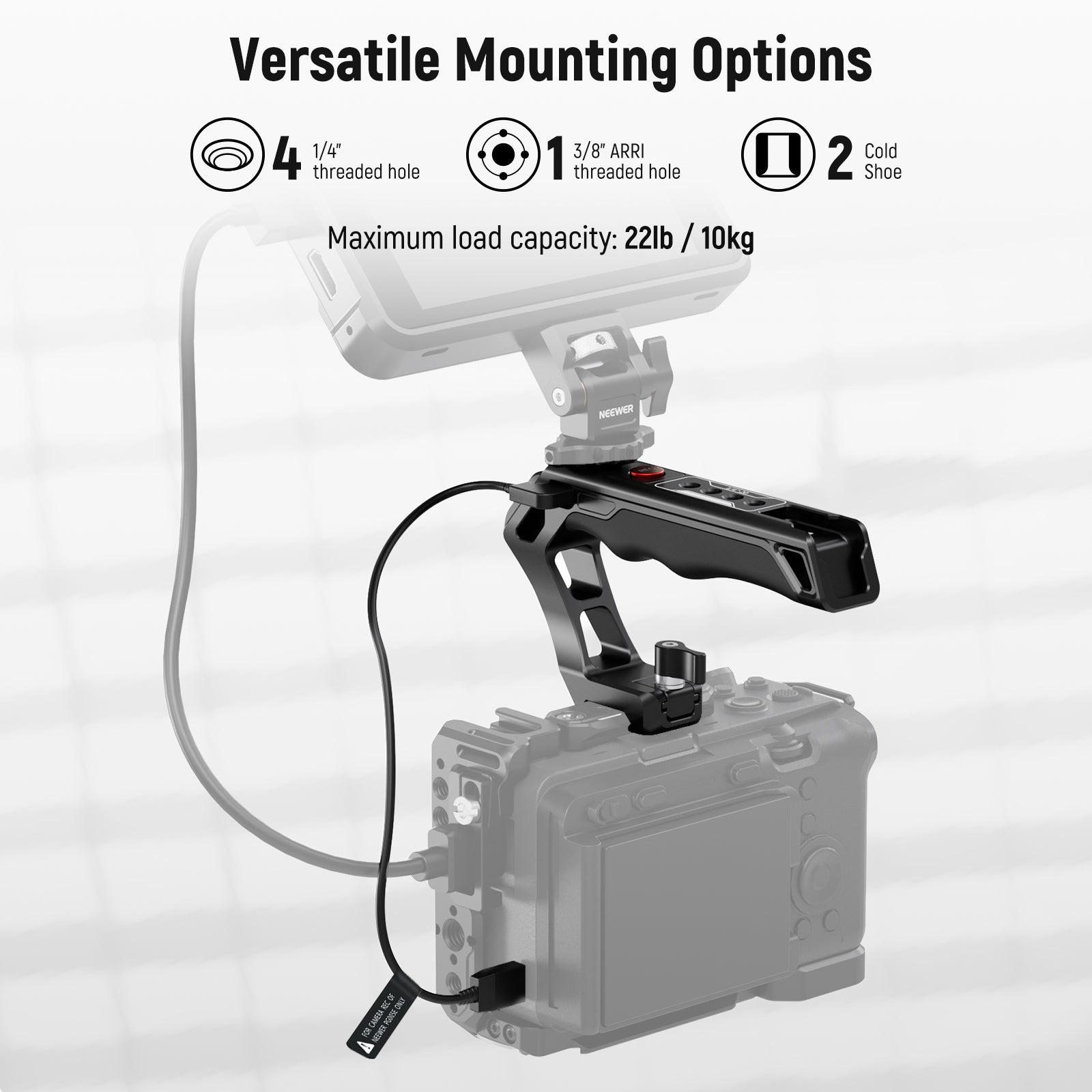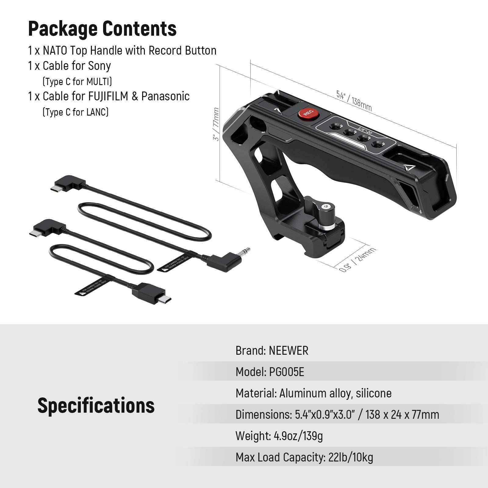 - Effortless Recording & Steady Shots- Enhance convenience and stability with the NEEWER PG005E Top Handle and its built-in Record Button. Easily start and stop recording without reaching for the camera's REC button. Ideal for handheld shooting or mounting on a shoulder rig or tripod, simplifies the control of the recording function, compatible with SmallRig camera cages, video rigs, and NEEWER cages
