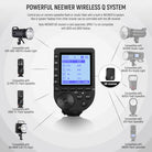 - Built In 2.4G Wireless Q System- Wirelessly trigger NEEWER Q4 Q3 Z2-C Z1-C Z760-C NW420-C NW655-C NW665-C S101-300W PRO, S101-400W PRO thanks to the built in NEEWER wireless Q system, or control other flashes without a Q system using a NEEWER QR receiver and a 2.5mm sync cord (all sold separately).