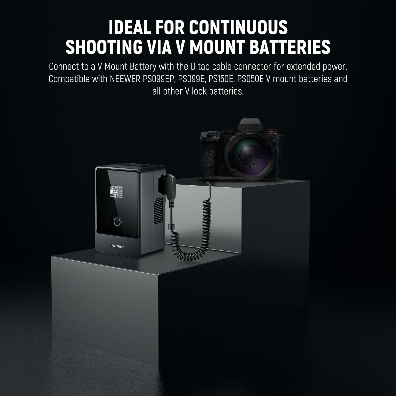 - Ideal for Continuous Shooting Via V Mount Batteries- With a D tap cable connector, this D tap to DMW-BLK22 dummy battery can work with NEEWER PS099EP, PS099E, PS150E, PS050E V mount batteries and all other V lock batteries with a D tap connector. Compatible with SmallRig V mount battery Series, compatible with Sony BP-U65 BP-U68 BP-U100 BP-U90 V mount batteries