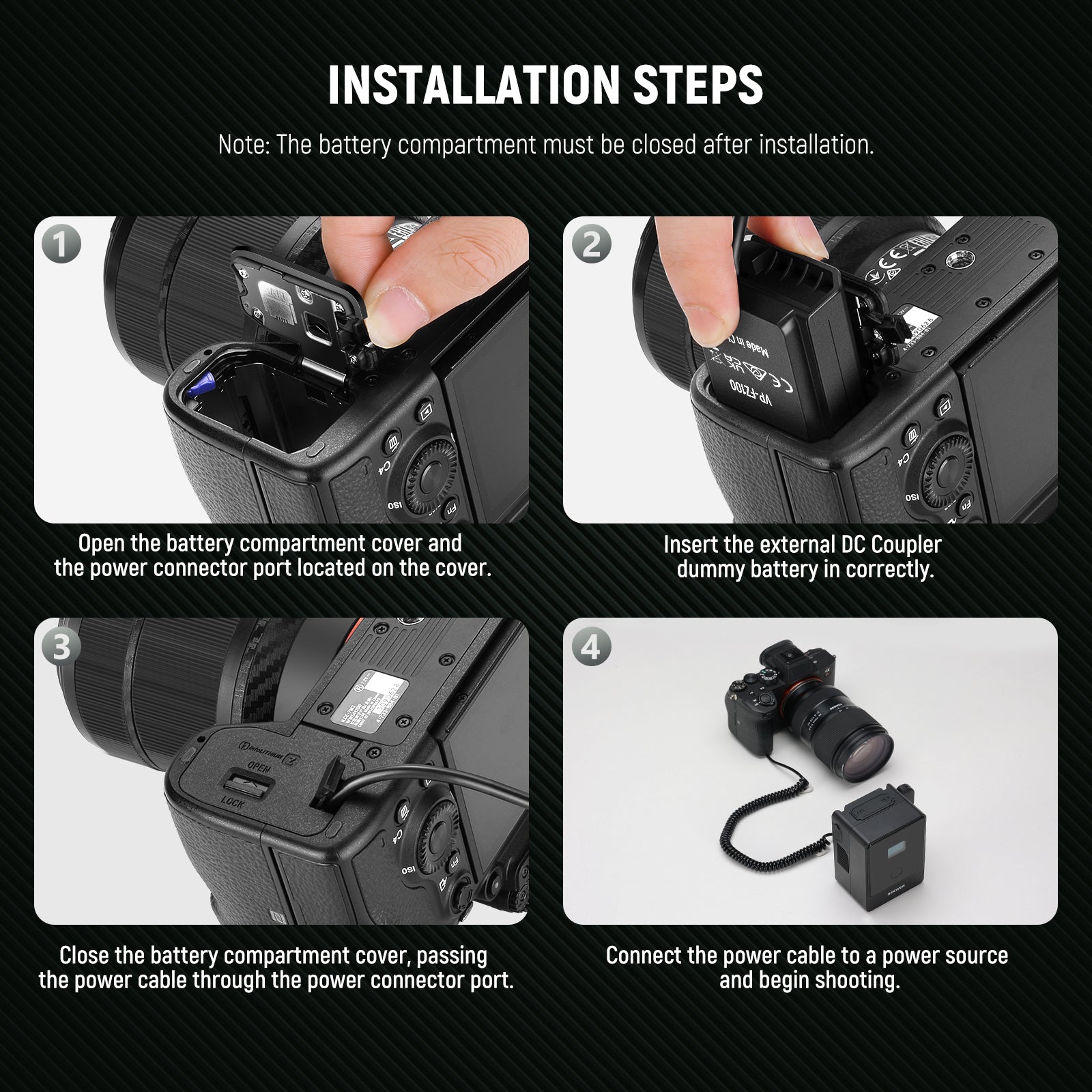 - Compatible Device Models- This dummy battery is a replacement battery for Sony NP-FZ100, and is fully compatible with Sony A1 A7 III A7 IV A7C A7C II A7C R A7R III A7R IV A7R V A7S III A9 A9 II A6600 A6700 FX3 FX30 ZV-E1 cameras that accept NP-FZ100 batteries