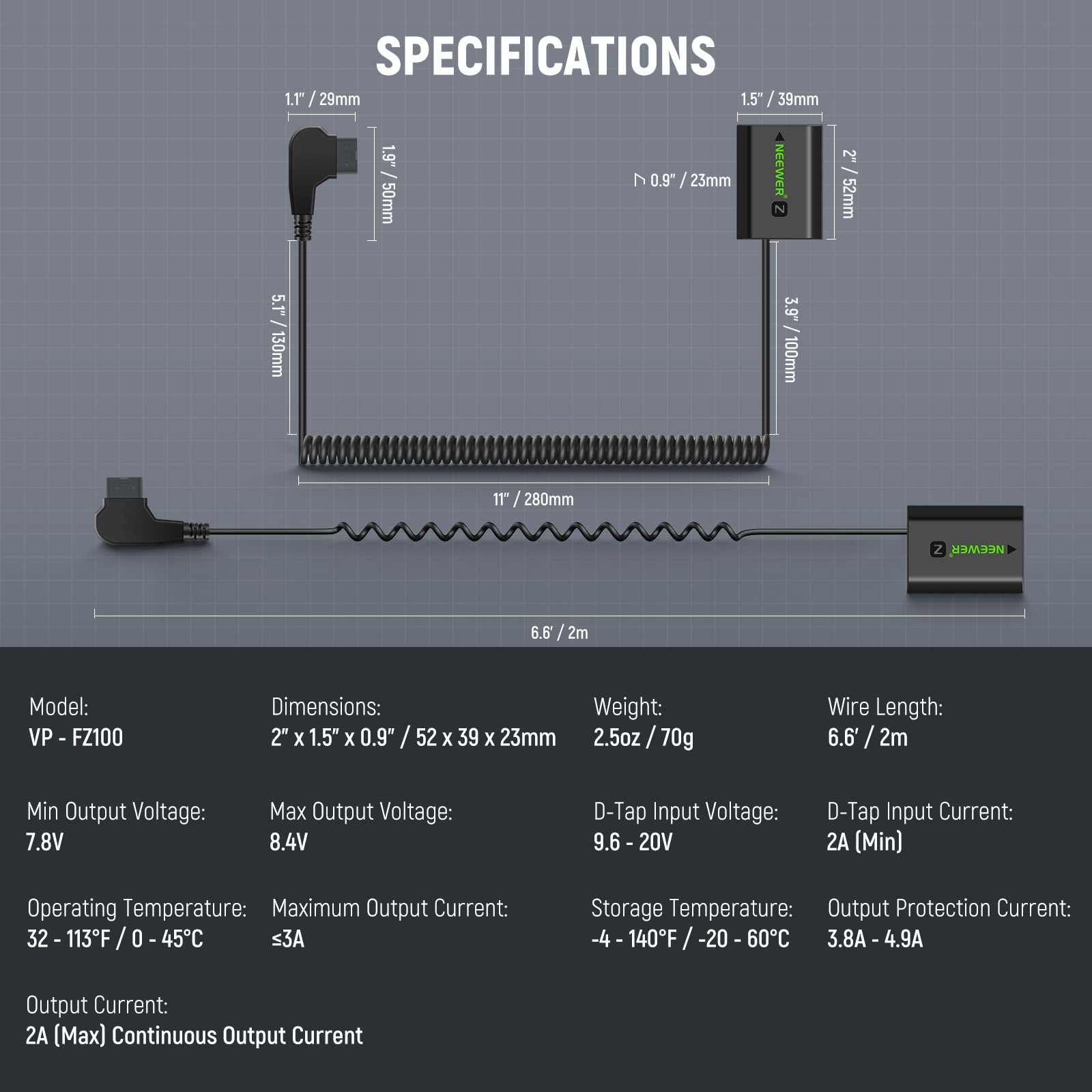 NEEWER VP-FZ100 NP-FZ100 to D Tap Dummy Battery