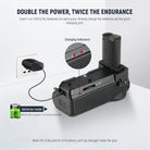 - Prolong Battery Life- Two battery chambers accept 1 or 2 EN-EL15c batteries and are backward compatible with EN-EL15b, EN-EL15a, and EN-EL15 batteries. Batteries can be charged inside the battery grip via a USB Type C cable (not included) or in the dual channel charger. Note: EN-EL15a and EN-EL15 batteries cannot be charged in the battery grip