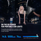 - On The Go Power for Portable COB Lights- This portable battery in a handle grip design, is especially suitable for NEEWER HS60B MS60B series video lights and other compact cob lights, providing a lighter solution for battery powered handheld video lighting. The large capacity of 5000mAh,74Wh ensures a reliable, steady power supply for extended shooting (supporting HS60B operating at full power for 1 hour). With striped patterns, this slim power grip is easier for prolonged holding