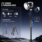 - 1/4" Screw & Threaded Hole- The power grip for video light has a 1/4" screw on top for securely attaching your lighting equipment, and a 1/4" threaded hole at the bottom to allow easy mounting on a camera tripod or photography light stand, ensuring a secure setup and releasing your hands. With a slim profile of 1.97"×1.97"×8.35" (50×50×212mm), it also doubles as a portable handheld light stand for stable and convenient handheld shooting