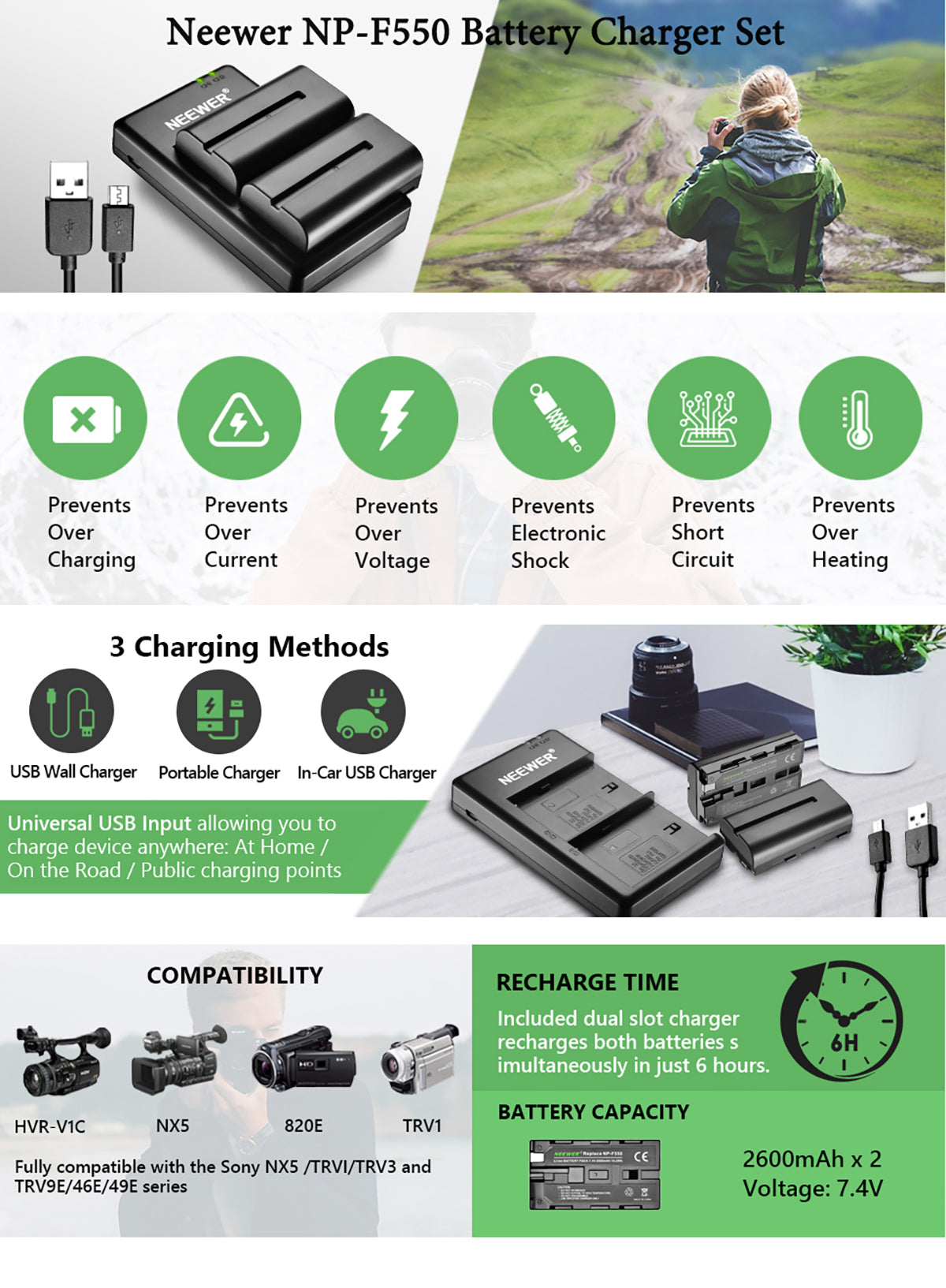 NEEWER NP-F550 Battery Charger Set for Sony