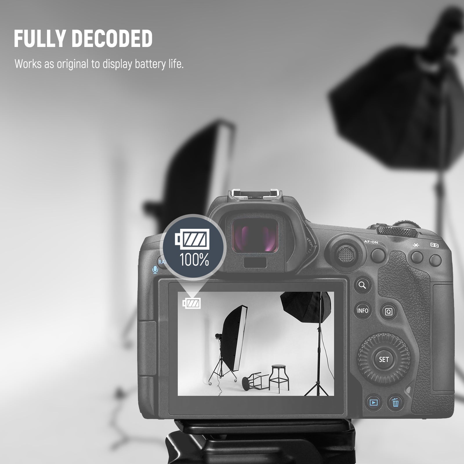 - Manufactured to Original Standards- Our battery is fully decoded to match the original LP-E6P battery specifications, sharing the same size and offering reliable power support with real time battery level display on the camera. It fits the compartment perfectly, avoiding issues such as jamming or bulging that could potentially damage the camera (camera NOT included)