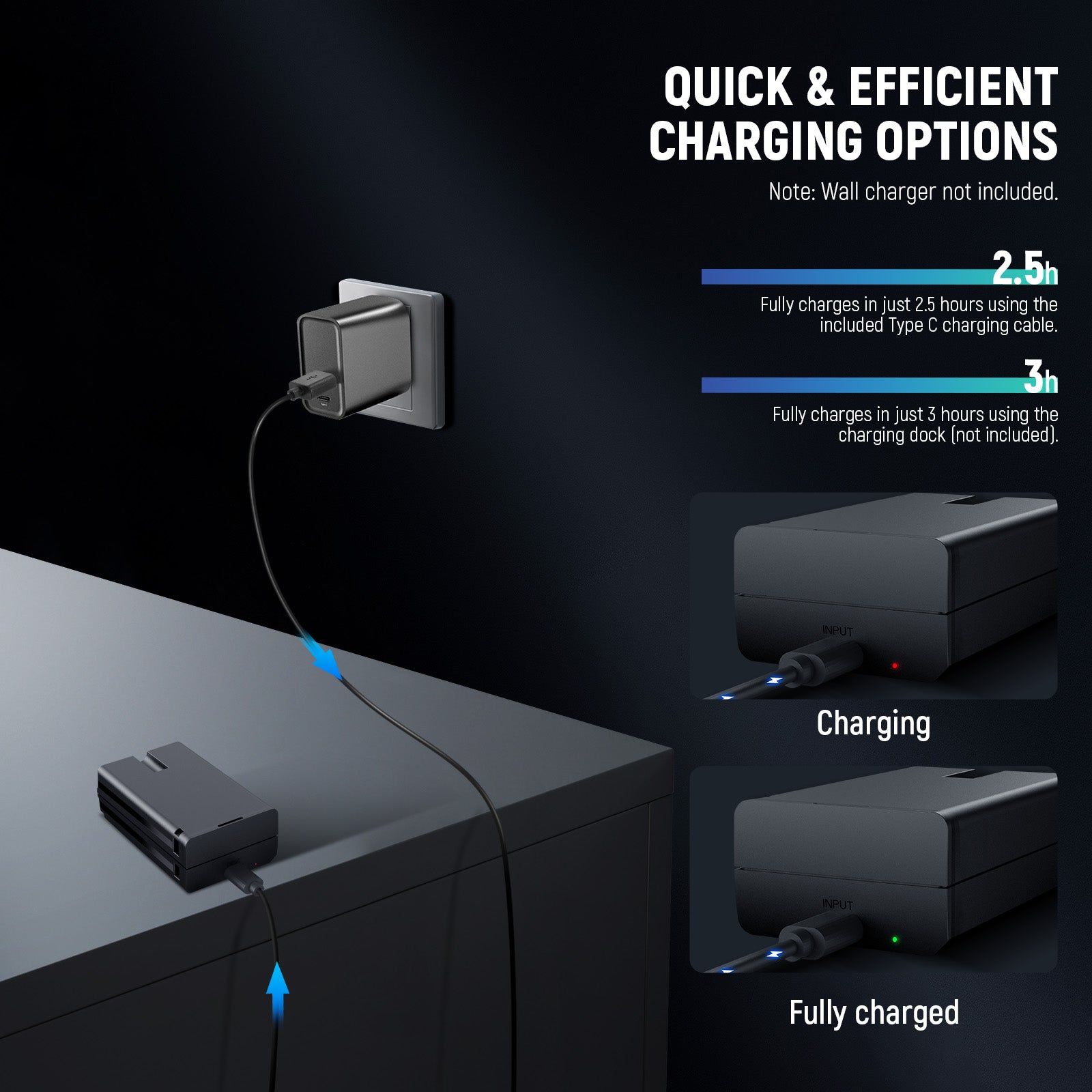 - Quick & Efficient Charging Options- The 7.2V/3000mAh replacement li ion battery charges quickly, with a full charge in just 3 hours using the charging dock (not included) or 2.5 hours using the included Type C charging cable
