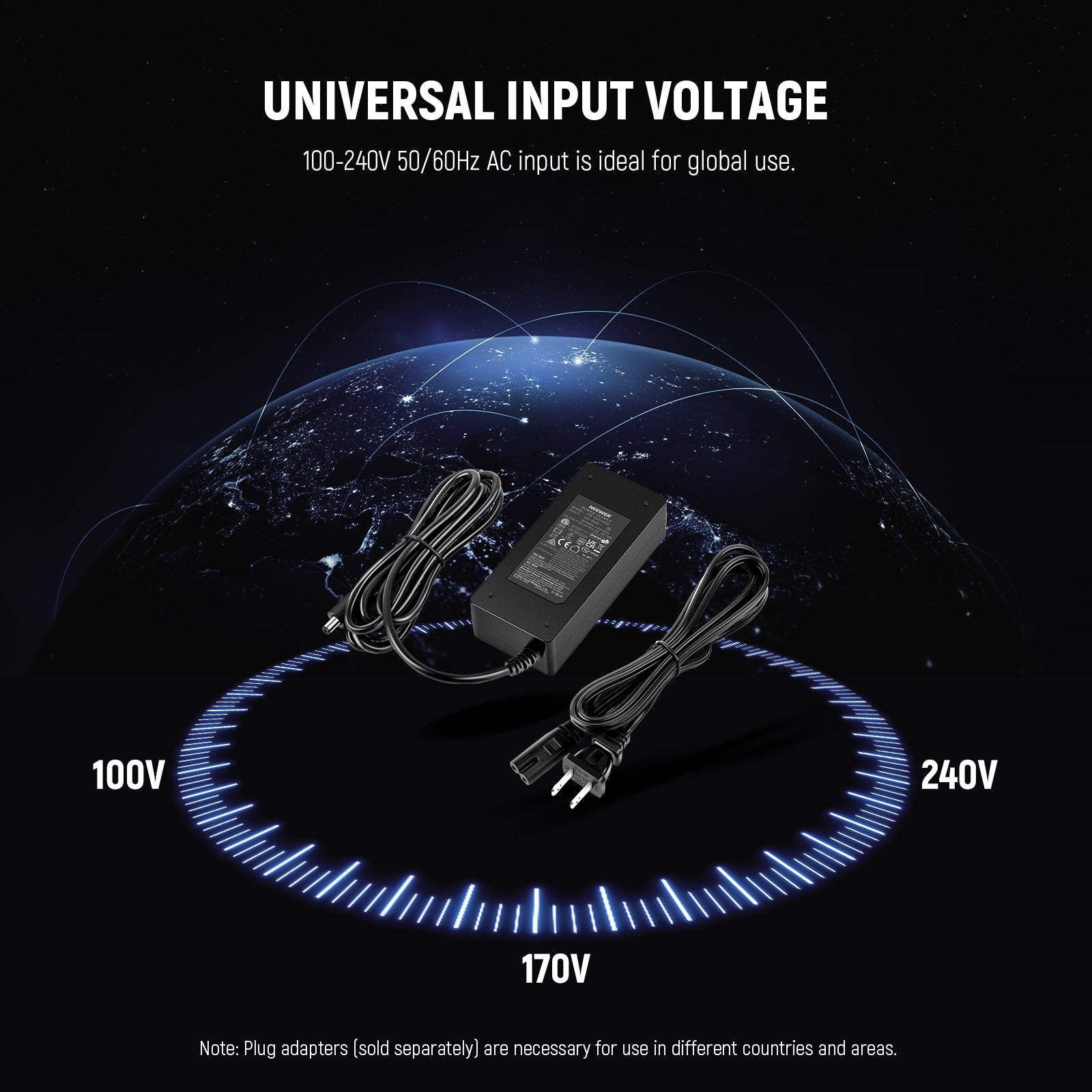 • Universal Input Voltage- 100-240V 50/60Hz AC input is ideal for global use. Note: Plug adapters (sold separately) are necessary for use in different countries and areas