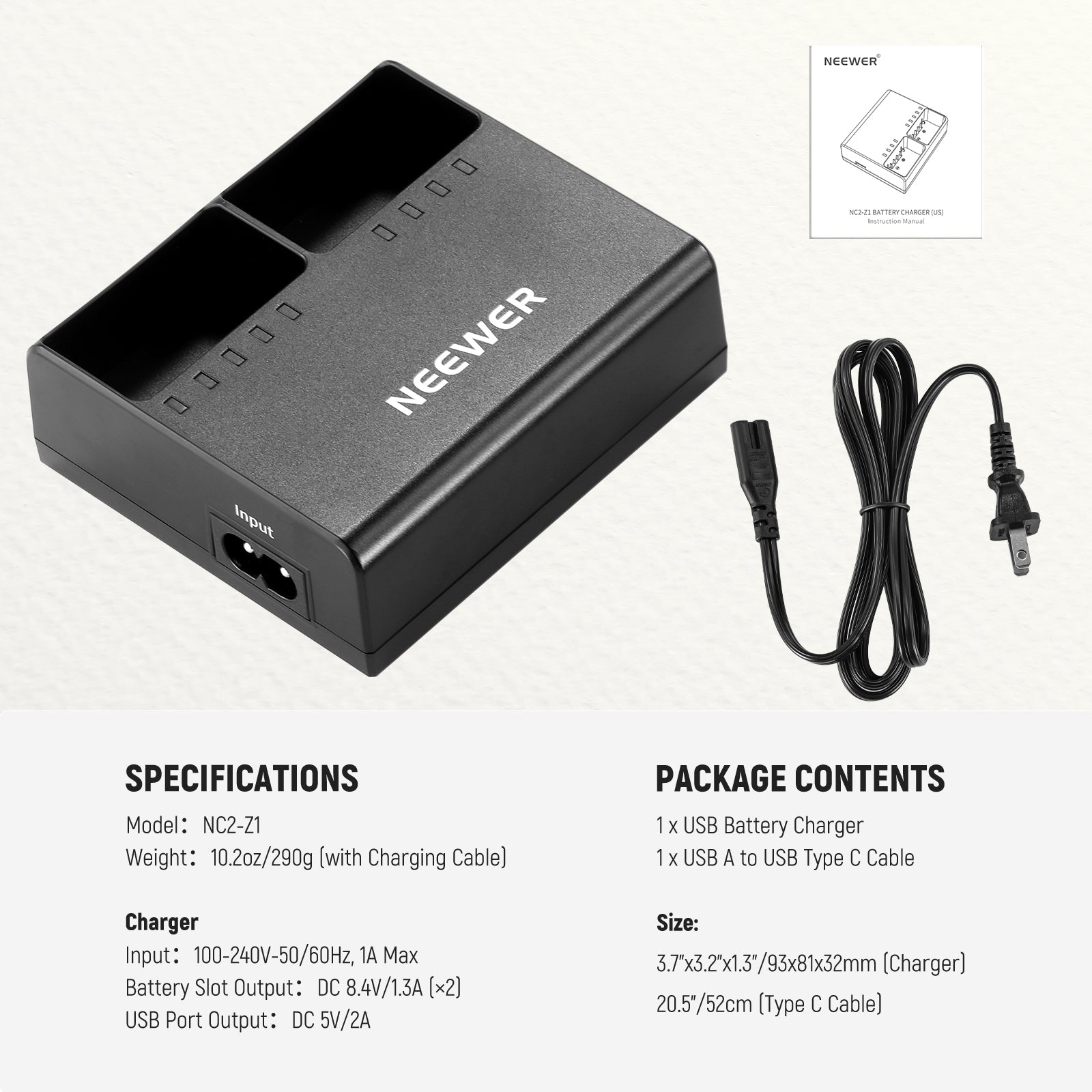 NEEWER NC2-Z1 Dual Slot Battery Charger Kit for Z2 Z1 Z760 Z880