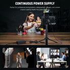 - 144.6"/367cm Super Length- With a 36.6"/93cm DC coupler, a 49"/124cm AC power adapter, and a 59"/150cm US plug AC cord, the dummy battery kit (combined length: 144.6"/367cm) offers ample cable length for flexible setup and positioning, adapting to various shooting environments effortlessly