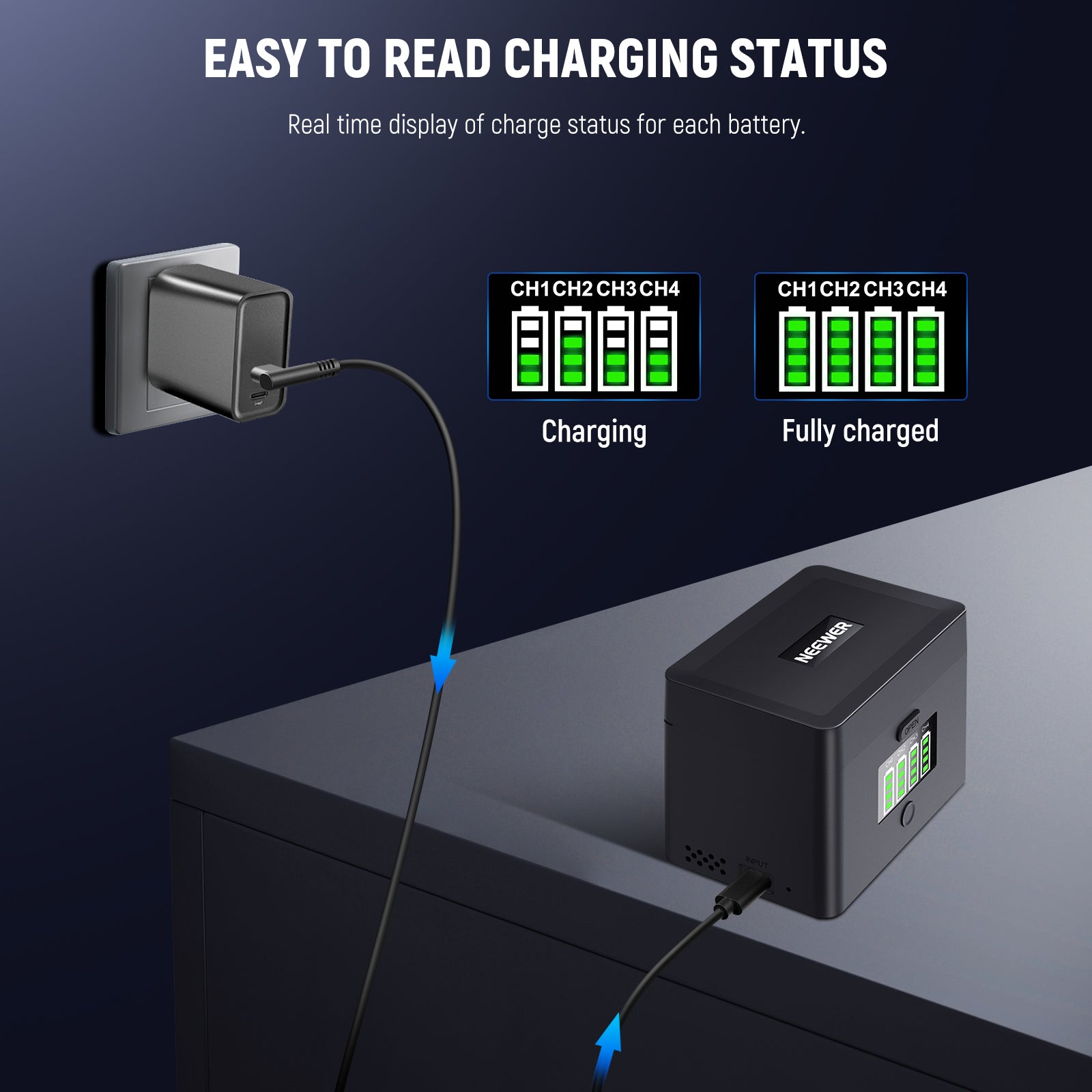 - Convenient On the Go Power Solution- The Portable NW-ZP4 battery charger features a USB Type C input port, easily connected to portable chargers, computers, car chargers, or other USB power sources for convenient power delivery wherever you go, keeping your batteries topped up for continuous shooting sessions