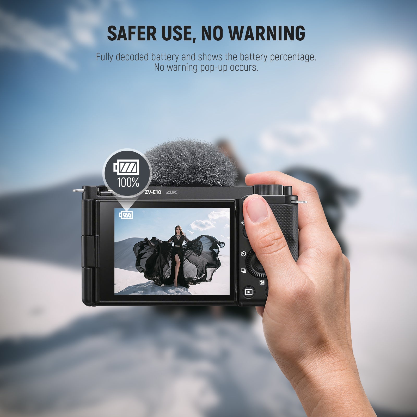 • Fully Decoded for Safer Use- This battery is fully decoded. It won't cause a warning alert to pop up on your camera screen and will display the battery status icon like the original batteries