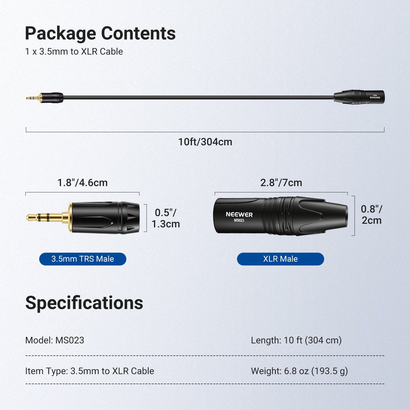 NEEWER MS023 3.5mm to XLR Cable